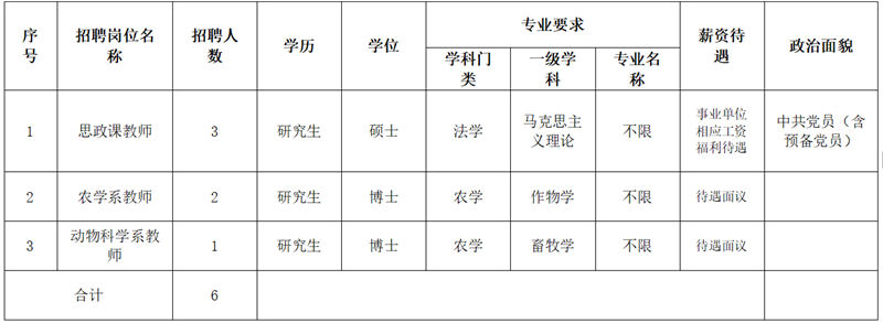 本次计划招聘事业单位工作人员6名,详见《黑龙江农业职业技术学院2025年度“黑龙江人才周”岗位需求计划》(附件)。