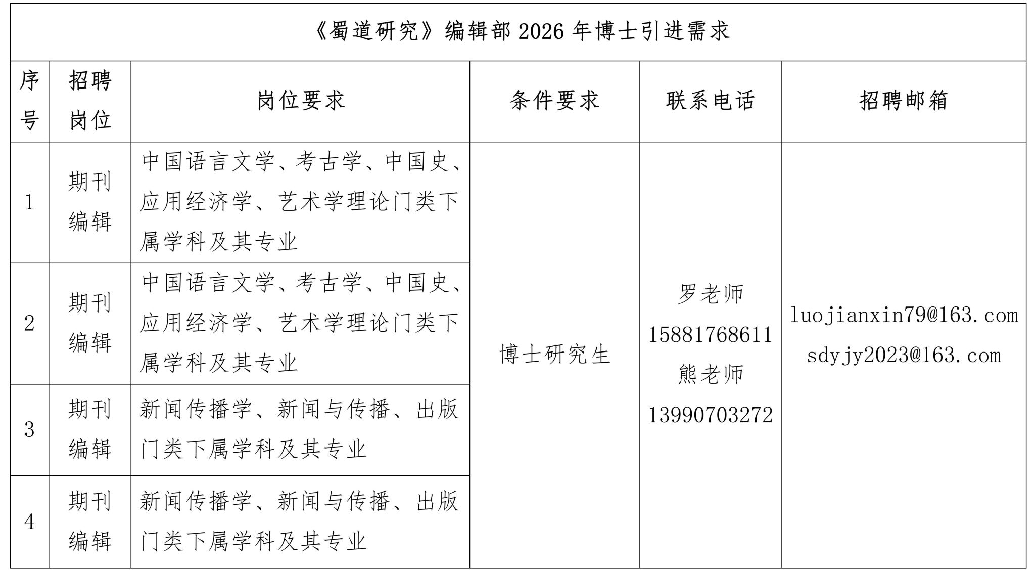 因期刊建设发展需要,经研究决定,面向社会公开招聘工作人员,具体招聘事宜如下: