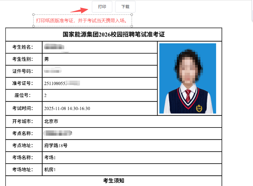 3、准考证打印开放时间:北京时间2025年11月5日10:00-11月8日14:30。