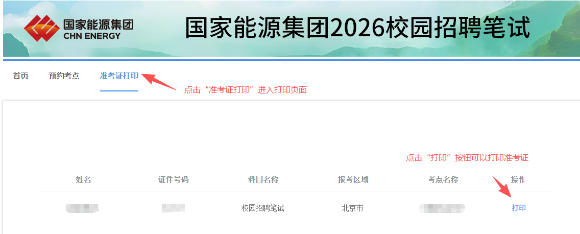 注:点击“打印”,会有两次提示弹窗,请注意查看,确定提示后方可进入打印界面,一旦完成确定,考点将不可取消.