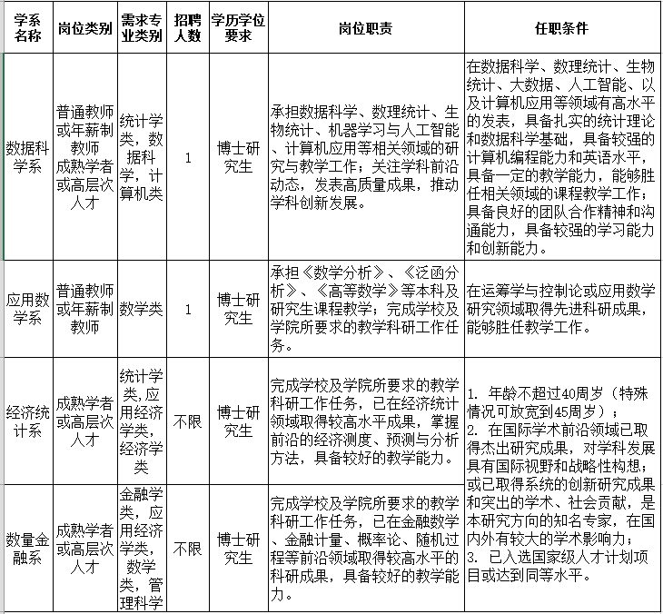 期待广大高层次人才、成熟学者和应届博士生加入对外经济贸易大学统计学院大家庭!