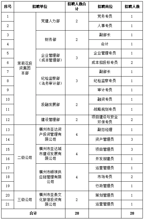 根据业务发展需要,现面向社会公开招聘28人,具体招聘基本情况的事项公告如下: