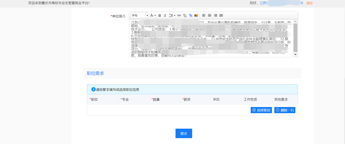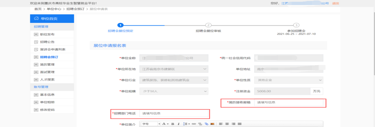 (二)请各参会单位在就业信息网(https://cqust.cqbys.com/)进行报名,学校会在“双选”会报名截止时间前进行审核。未注册单位请先填写和上传资料进行注册,待学校审核通过后按照已注册单位的操作流程进行“双选”会报名。